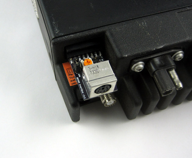 This adapter plugs into the GM300's 16-pin accessory port and adapts it to the 6-pin Mini-DIN packet data connector common in the amateur radio world. Many TNCs can be connected directly to this port, and our trackers can use it with the CT-M1 cable.