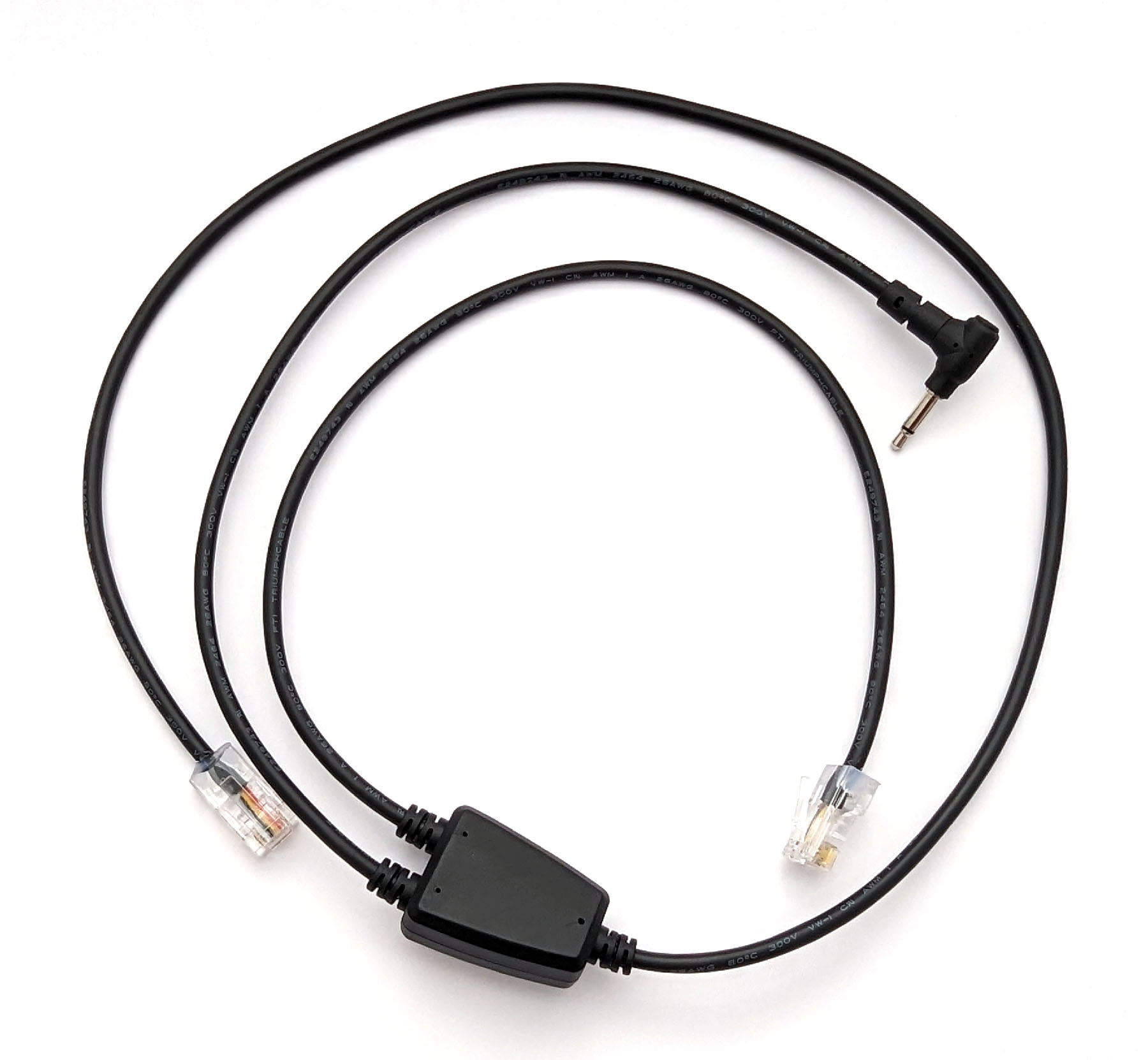 EchoBridge and ADS-SR1 repeater interface cable for most Kenwood mobile radios having an RJ45 microphone jack, and other imported radios with the same pinout, including the BTECH 50X2. The 3.5mm plug connects to the radio's speaker jack.